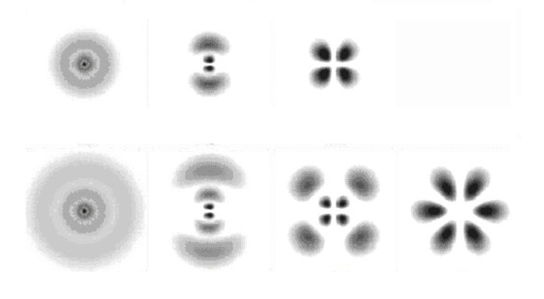 First, an electron detaches from an orbital (an electron shell). The following image shows the pictures of some orbitals: